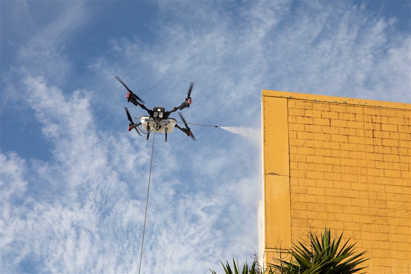 For walls and surfaces that need more than a treatment, our latest service combines drone technology with a high-pressure water blaster.